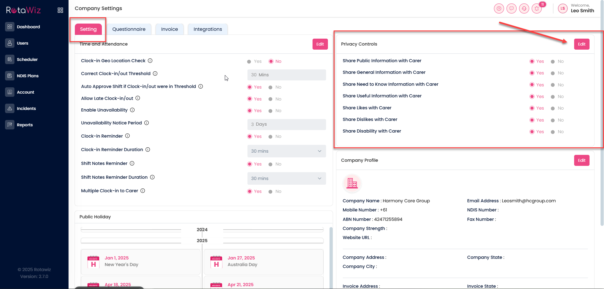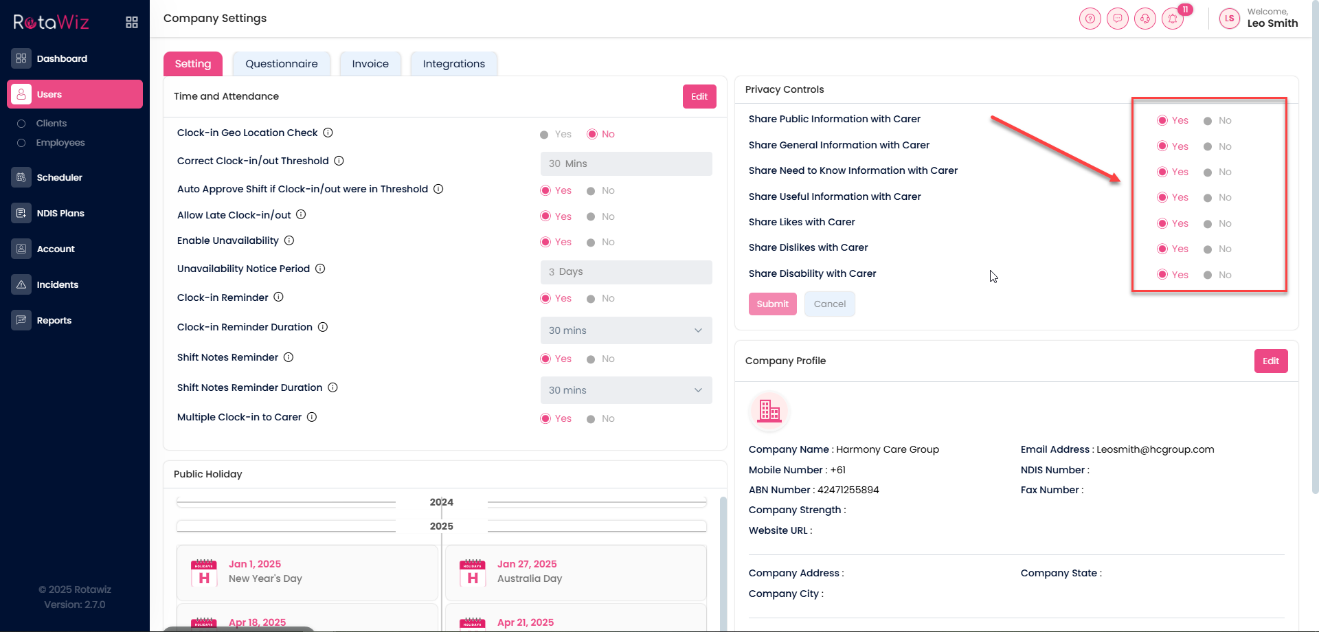 This ensures carers only see the information you want them to, keeping sensitive data secure