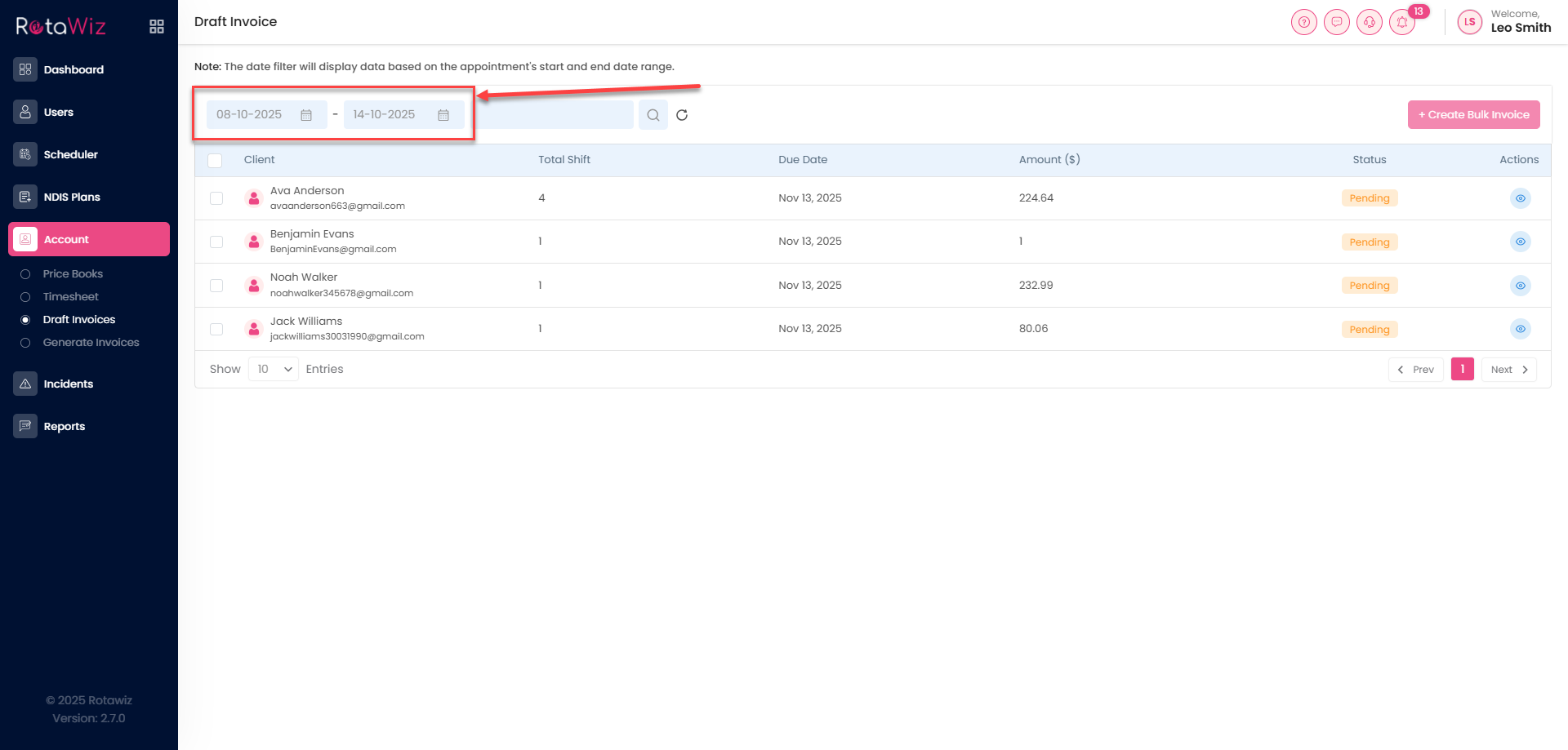 - Go to Draft Invoices and use the date filters to find past shifts.