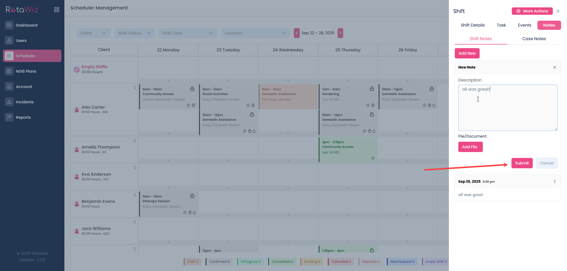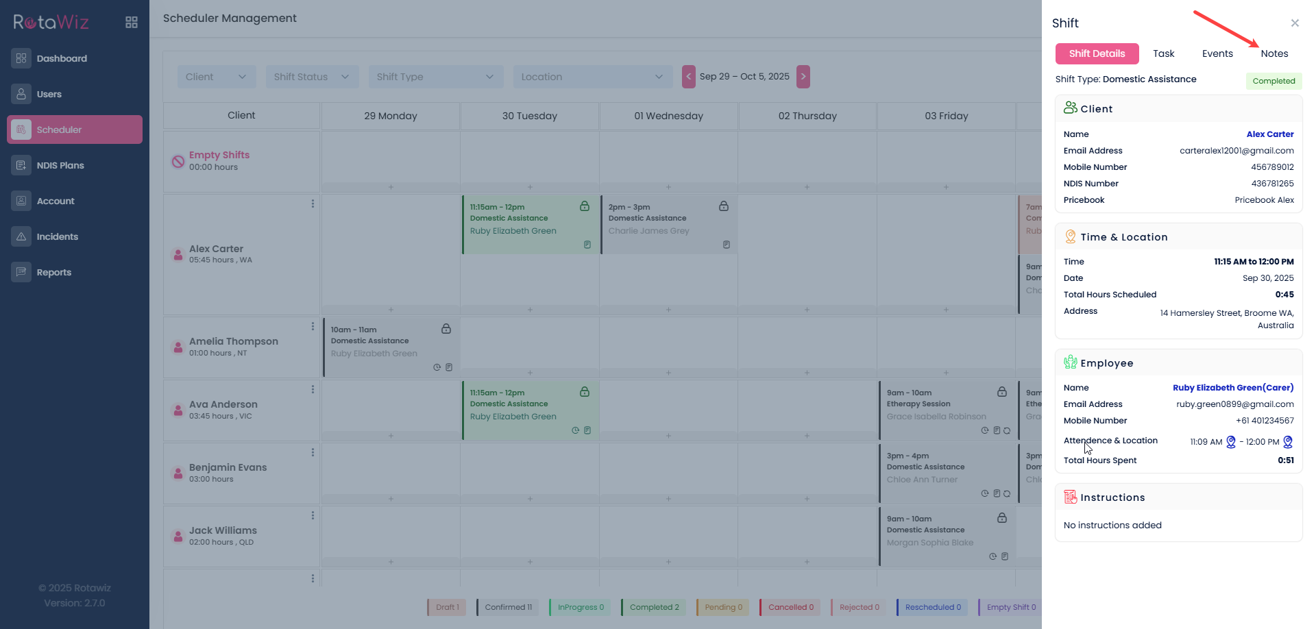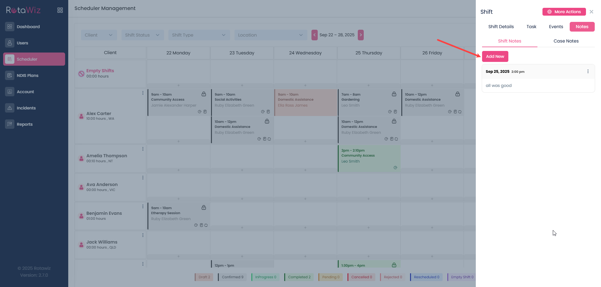 Use filters to find the scheduled shift, then click on it to open the shift full view.