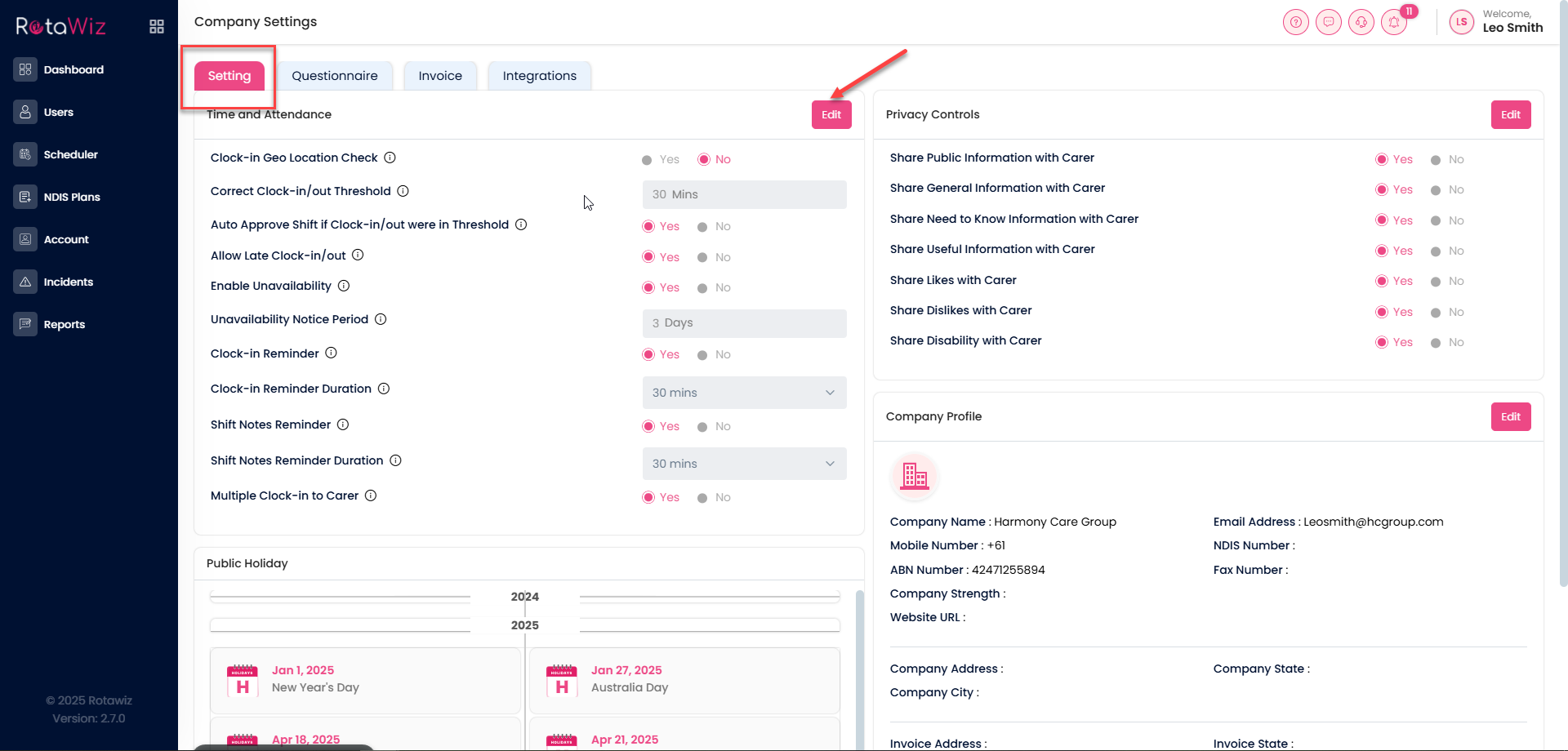 You can enable location tracking for staff clock-ins in RotaWiz by following these stepsAccess Company Settings