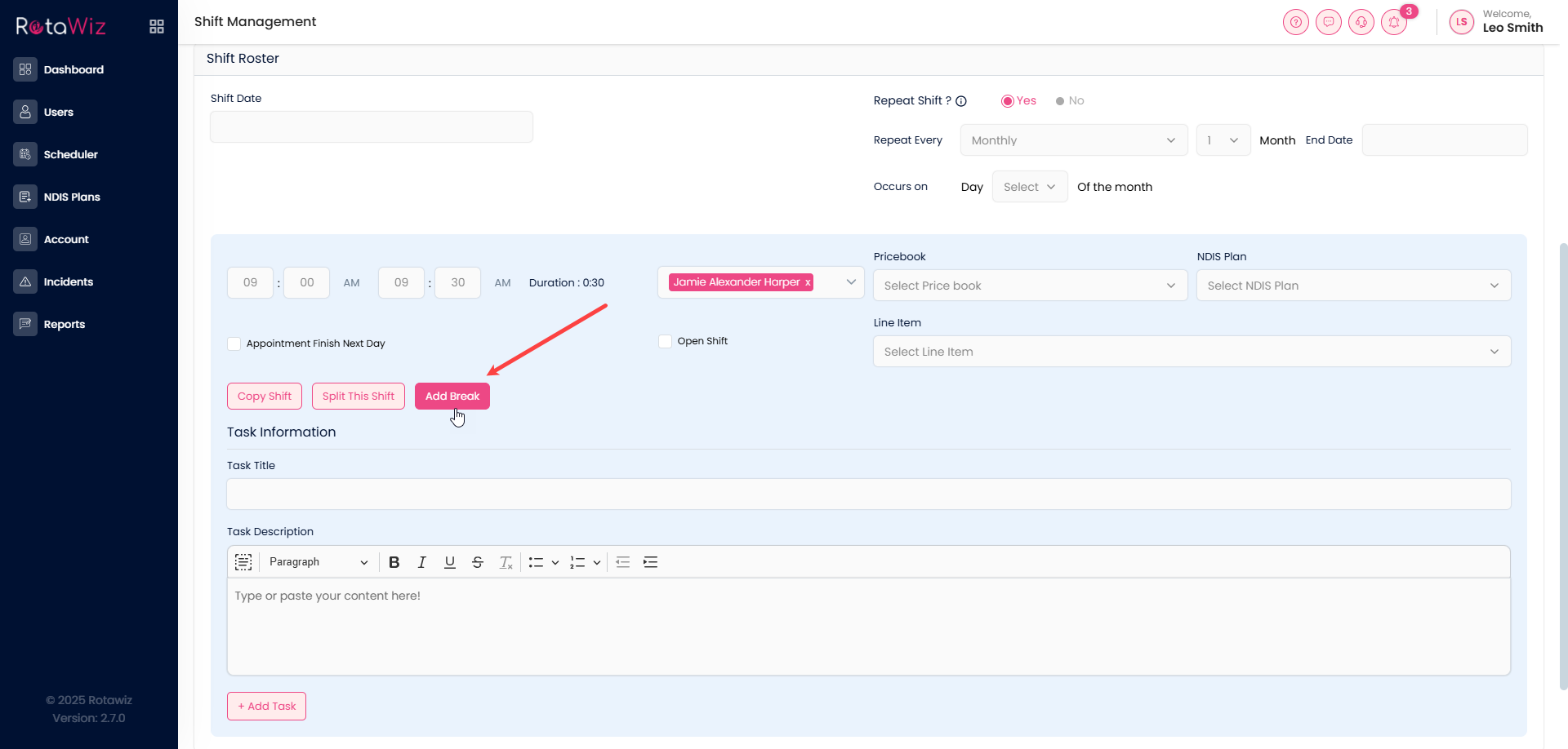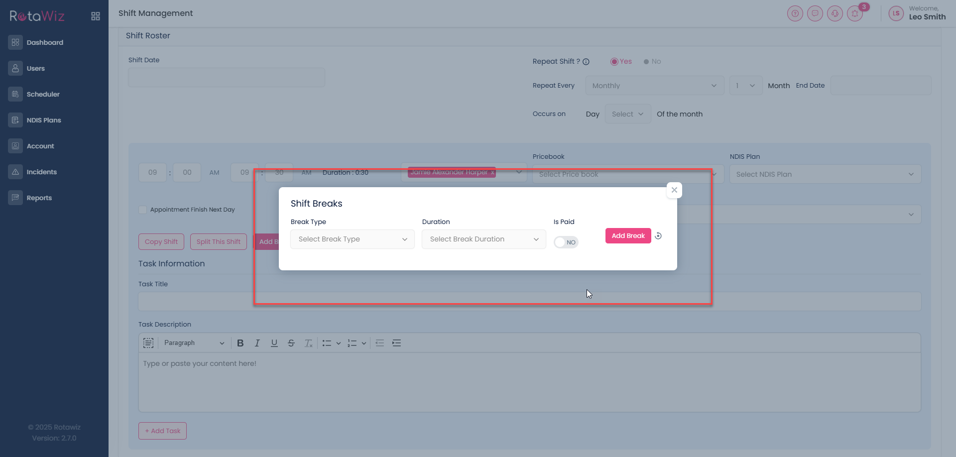 You can easily add breaks to a shift in RotaWiz by following these steps