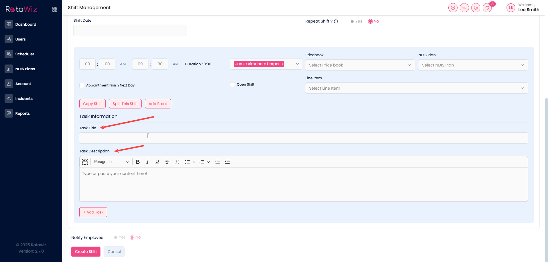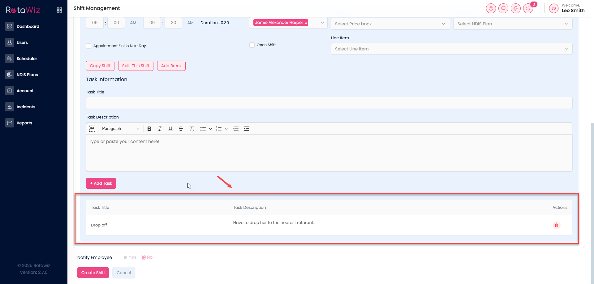 You can add tasks to a shift in RotaWiz to keep everything organised and clear. Follow these steps