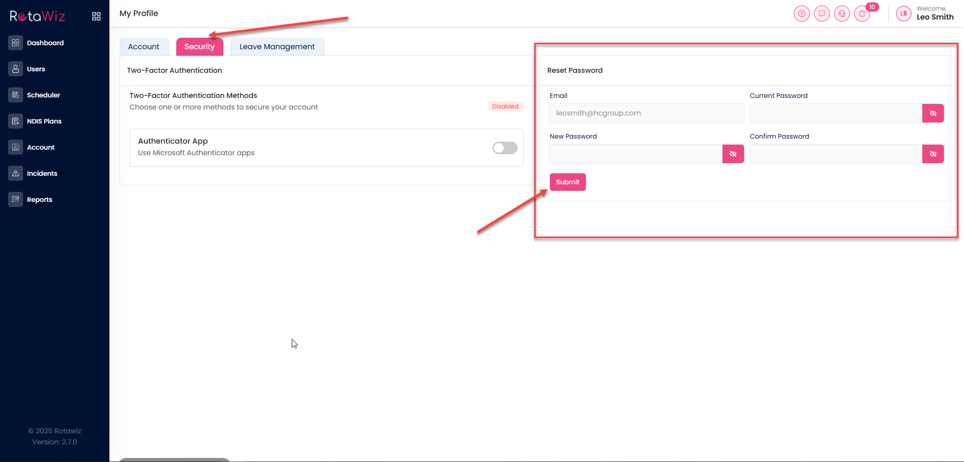 You can easily change your password in RotaWiz to keep your account secure. Follow these steps