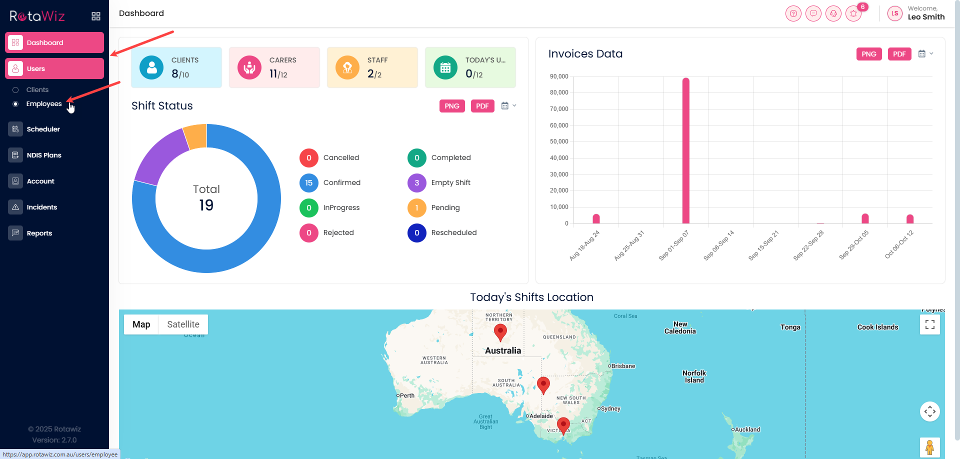 - From the side navigation menu, click on Employees