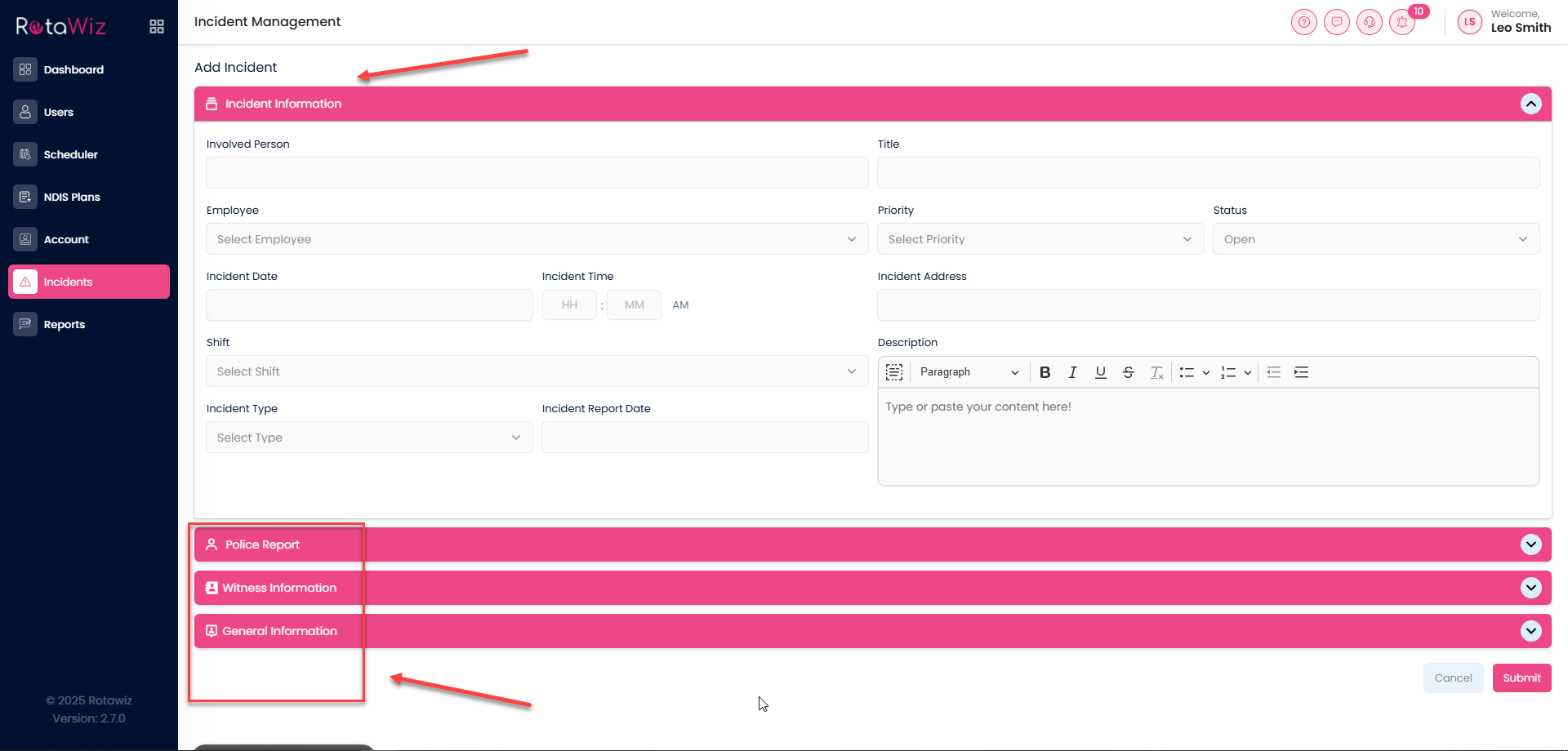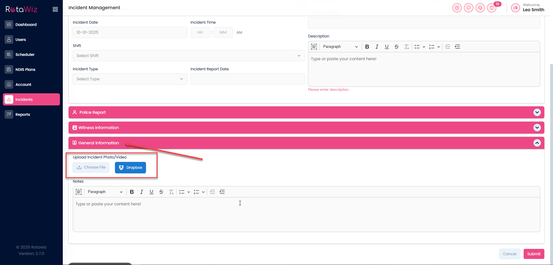 Submit the IncidentAfter completing the incident details and attaching files, click “Submit” to log the report.