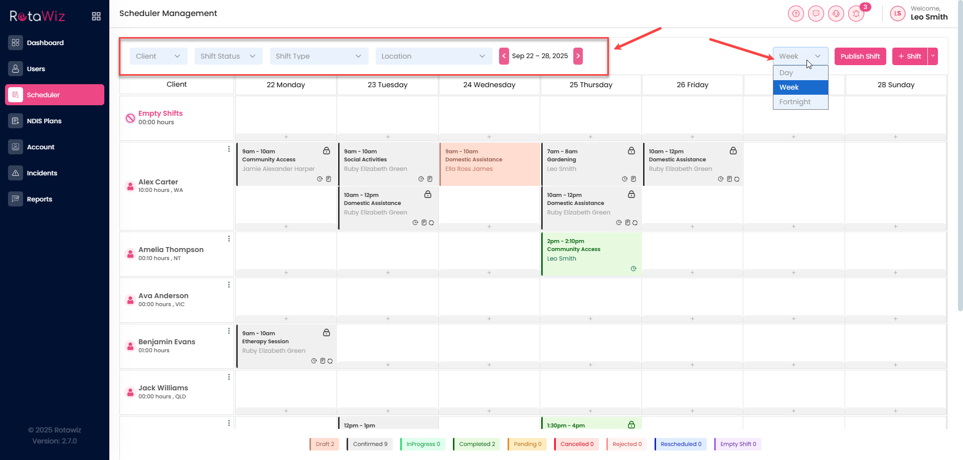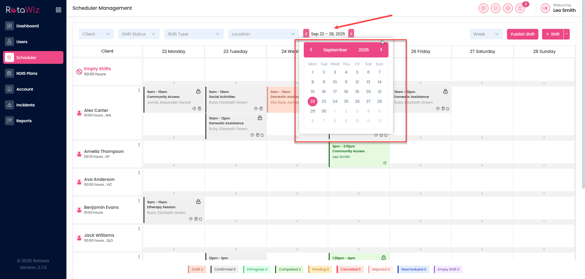 - Future dates to see upcoming shifts