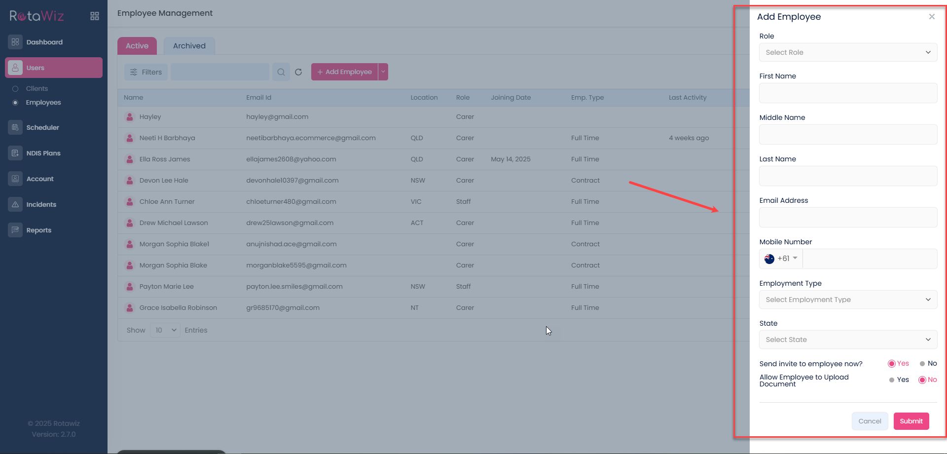 When adding a new staff member in RotaWiz, there are a few key details you must provide to set up their profile correctly. These are the mandatory details: